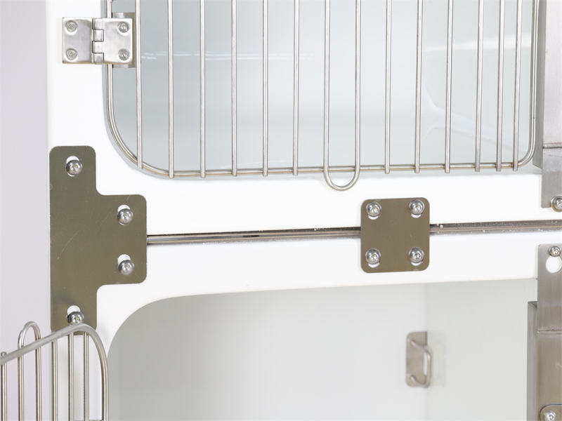 Odnímateľné predné dvierka upevnené silnými pántmi je možné nahradiť priehľadnými akrylátovými dvierkami a premeniť tak klietku na kyslíkovú terapiu.